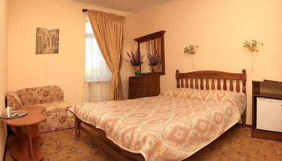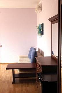 В номере установлена двухместная кровать плюс диван который может служить дополнительным местом . Также в номере есть спутниковое ТВ, холодильник, санузел, кондиционер, балкон, телефон, банные принадлежности.