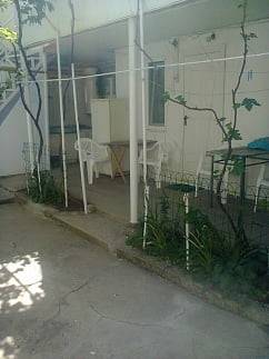 Во дворе пластиковые столики и зонт для отдыха, двор затенён. Мангал. Wi-Fi Интернет