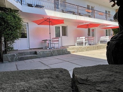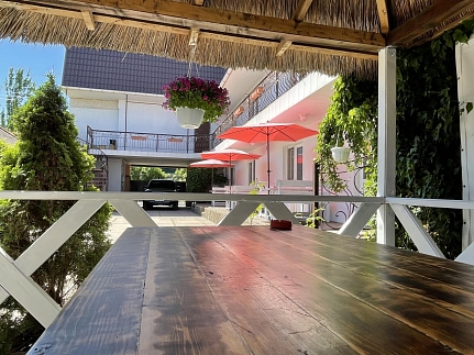 ПЛЯЖ (150м) во дворе место под авто ,беседки для отдыха ,мангал!! Рядом кухня быстрого питания "Казацкая хата" - 50м, магазины, кафе 100м, супермаркет АТБ (круглосуточно)2 мин ходьбы,рядом с АТБ рыбный и овощной рынок , центральная городская площадь с луна-парком 600м, 2 километра до АКВАПАРКА.автобусная остановка-100м .Цена зависит от сезонности, от комплектации и квадратуры номера.Питание: общая кухня для самостоятельного приготовления пищи.Все номера с удобствами.На гугл карте по адресу указывает неправильное местоположение«Ищите гостевой дом 79»