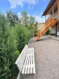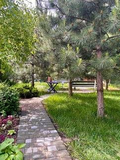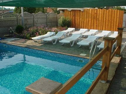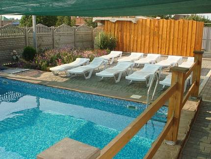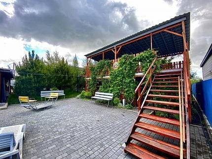 На территории общая кухня, открытый бассейн, джакузи, автостоянка, зона отдыха с барбекю, батут для детей, стол для пинг-понга.