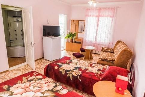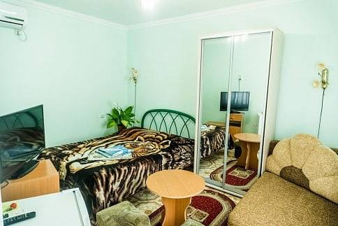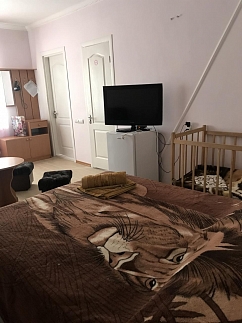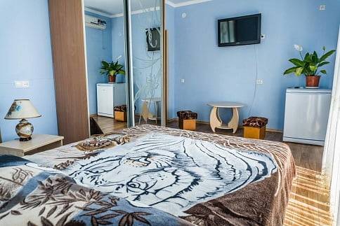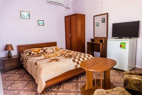 В номерах: новая современная корпусная и мягкая мебель, 2-х спальная кровать с ортопедическим матрасом, большой шкаф, кондиционер (сплит-система), плазменный телевизор (кабельное ТВ), холодильник, душевая кабина, фен, полотенца, туалетные принадлежности, др.