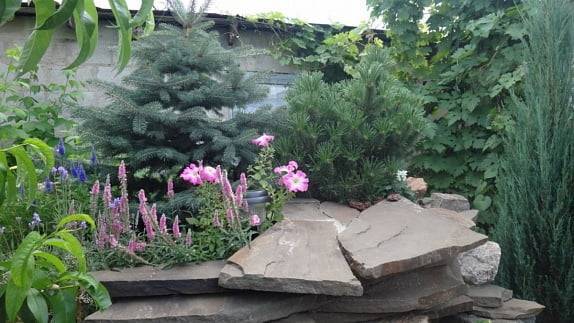 После жаркого солнца можно отдохнуть во дворе, утопающем в цветах и тени деревьев.