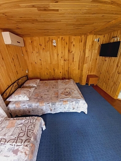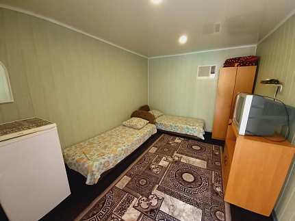 В номерах полулюкс в наличии - телевизор, холодильник, кондиционер.Туалет и душ во дворе.Вода горячая постоянно.Бесплатный wi-fi Интернет.В номерах эконом простенько,но чисто и уютно.Возле каждого номера столик.Цена указана за 1 человека в сутки.