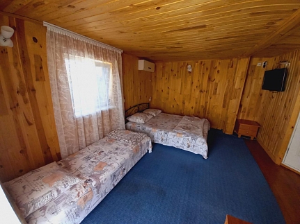 Номер люкс находится на 2 этаже,номер на 3х человек с удобствами в номере.Есть номер двухкомнатный,на 5-6 человек,с удобствами в номере.