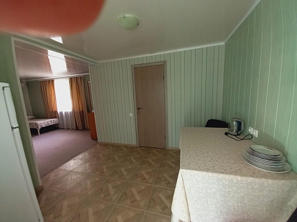 Кухня находится на территории. в наличии есть все необходимое.Во дворе установлены - мангал, беседка, лавочки, столики для отдыха, wi-fi.Рядом располагается рынок, несколько магазинов и кафе, остановка, аттракционы.Также рядом находится лечебный пансионат *Арктика*.Расстояние до пляжа - 2 минуты пешком.Встречаем-провожаем с вокзалов города (авто, ж/д).Бронирование по телефону заранее.Более 10 дней скидка 5%Номера освобождают в 12.00,заселяем в14.00,По всем вопросам звоните,мы ответим всем!!!Мы работаем с мая по сентябрь.