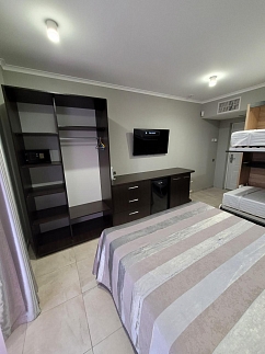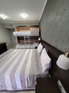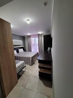 Пансионат "Холин Холл" предлагает проживание в трехэтажных корпусах. В 2021 мы обновили полностью ремонт. Для вас - уютные двух- и трехместные, четырёхместные номера с балконом. В каждом номере - кондиционер, спутниковое ТВ, сейф, холодильник,чайник, санузел, горячая и холодная вода круглосуточно, wi-fi безлимитный. Также у нас появился новый трехэтажный современный корпус с двухкомнатными номерами. Можно сказать полноценная квартира. В одной спальне двуспальная кровать, во второй две кровати. Третья комната оснащена кухней, тв, обеденной зоной и диваном для пятого человека. Современный санузел.