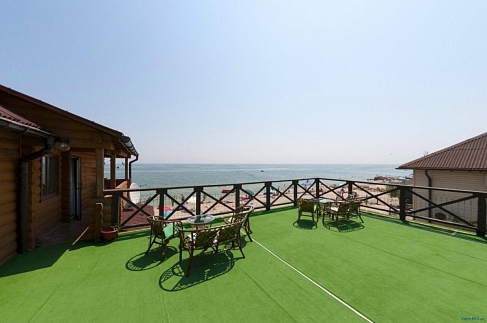 На территории отеля имеется просторный крытый двор, с видом на море, где располагаются столики, лавочки и качели для отдыха. На просторной видовой площадке 2-го этажа также можно отдохнуть, сидя за столиками под зонтиками, либо на шезлонгах, наслаждаясь морским пейзажем.