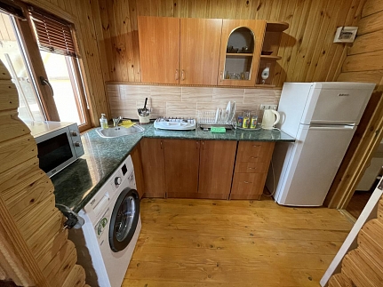 - полноценная кухня (кухонный гарнитур с мойкой, газовой плитой, холодильником, стиральной машиной)