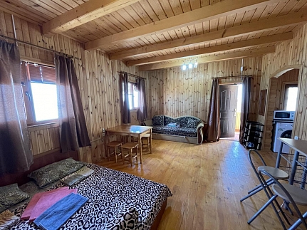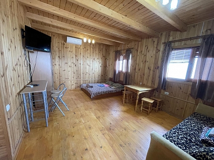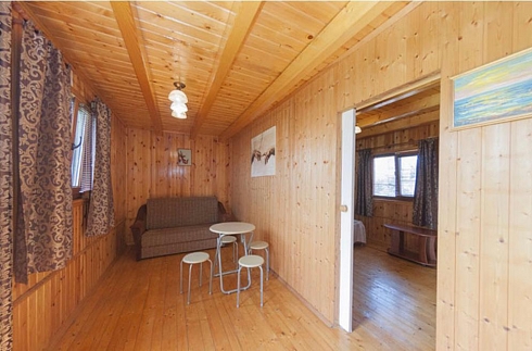 Также в каждом номере помимо спальных мест имеется шкаф для одежды, тумбочки, журнальный столик и стулья.В наличии также апартаменты (двухкомнатный) и студии. Номера - эко, из деревянного сруба. 4-местные.
