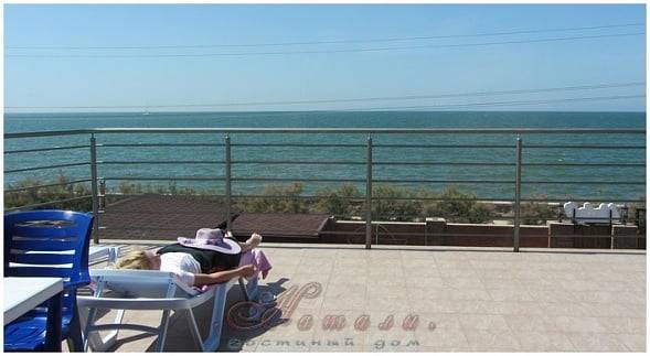 Также, на территории гостиницы имеется кафе-бар, летняя площадка — для изрядно подуставших за день от отдыха на песках Азовского моря. Да и просто можно поболтать в тени. Уютная беседка и терраса с видом на Азовское море – для любителей спокойного отдыха.