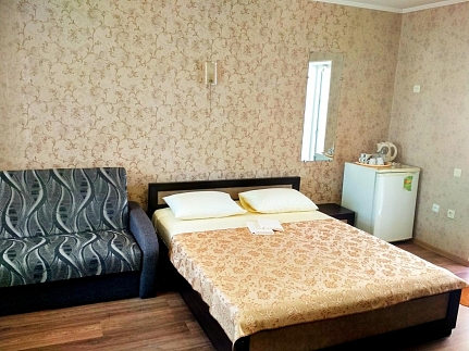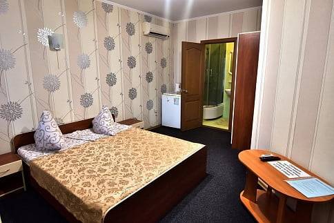 В номерах в наличии холодильник, телевизор, кондиционер. Все номера с удобствами внутри.