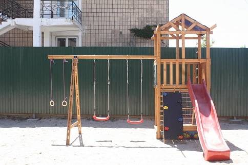 Ваших детей ждет новая удобная детская площадка с горками и качелями.На территории базы отдыха «Янтарь»: