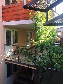В номерах: кондиционер, телевизор, холодильник, санузел, душ, балкон.На территории работает бесплатный wi-fi.Во дворе: детская площадка, озелененная территорияПитание: на территории столовая домашней кухни (за отдельную плату).