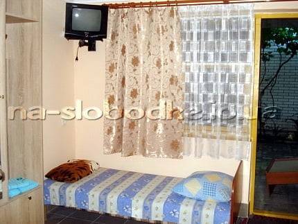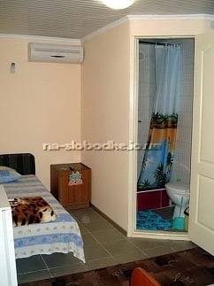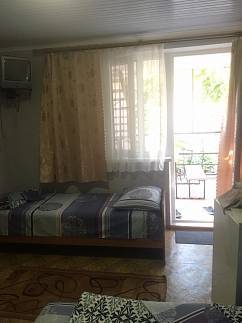 Также есть кухня со всем необходимым для самостоятельного приготовленияРасстояние до моря: 20 метров. Чистый и широкий песчаный пляж.Встречаем с вокзалов (авто и ЖД).Стоимость указана с человека в сутки (зависит от времени сезона)
