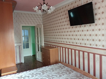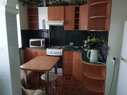 В квартире есть все необходимое: двухкамерный холодильник, газовая печь, микроволновка, утюг, электрочайник, посуда, пастельное.