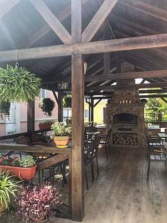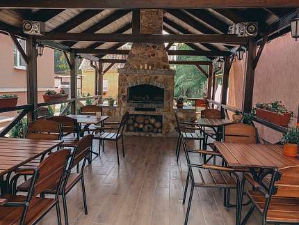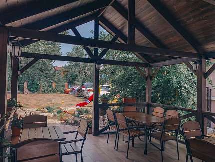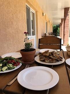 За отдельную плату предоставляется 3-х разовое питание в столовой " козацкая хата",время работы с 7:00 до 22:00, 50м от отеля,так же есть объекты домашней кухни.