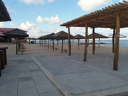 Проживание: комнаты в отдельно стоящих домиках с вентиляторами, кондиционерами,холодильниками, ТВ, мебелью.