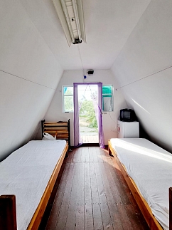 В домике 4 деревянные кровати, холодильник, электроплитка, телевизор, эл. чайник, микроволновая печь, вентилятор.