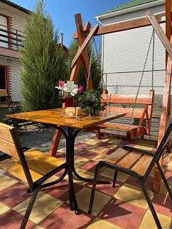Во дворе отдельные двух- и трехместные домики со всеми удобствами (душ, туалет, горячая вода, кондиционер, спутниковое ТВ). В каждом домике есть своя кухня (холодильник, печь, мойка, посуда).Есть двух- и трехместные эконом-номера. В четырехместном номере душ, туалет, кондиционер, холодильник, телевизор.Двор просторный, зеленый. Имеется деревянная беседка для отдыха, мангал, своя стоянка для авто.Действует Wi-Fi Интернет.Недалеко центр города, набережная, ЖД вокзал, магазины.Удобное расположение - аквапарк, дельфинарий, зоопарк в трех остановках маршрутного автобуса.Стоимость указана с человека в сутки (зависит от времени сезона).