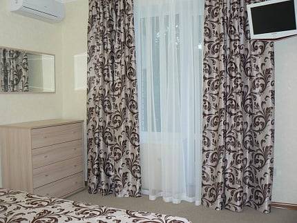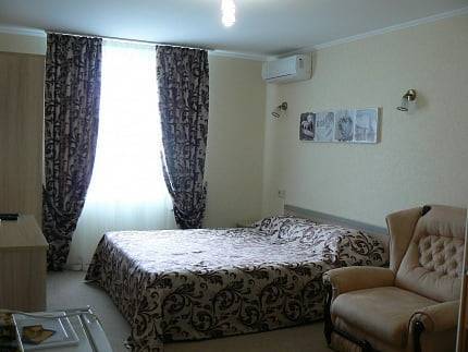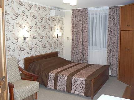 Для наших гостей мы предлагаем однокомнатные и двухкомнатные номера на два-четыре человека с удобствами, кондиционером, холодильником, телевизором (спутниковое ТВ).