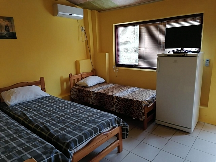 В домиках все необходимое для проживания и комфорта. Холодильник,телевизор ,кондиционер в каждом домике