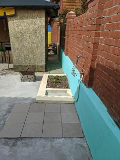 Душ и туалеты рассчитаны на два домика, горячая вода (бойлер) круглосуточно.