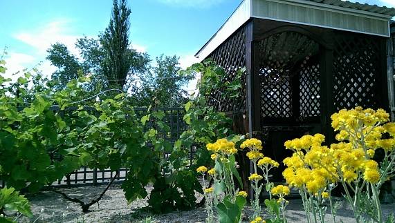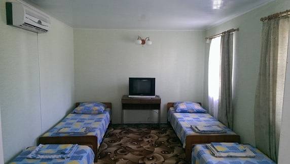 Сдаётся летний дом. На первом этаже уютная просторная комната на 4 чел. с кондиционером, спутниковым ТВ; есть вместительная прихожая и кухня (газовая плита, холодильник, мойка, набор всей необходимой посуды). Для большой компании - дополнительно 2-й этаж (просторная мансарда на 3 чел. с верандой: кондиционер, спутниковое ТВ, холодильник). Душ с горячей водой, умывальник (летний вариант), туалет. Во дворе беседка с обеденным столом, сад, место для авто.