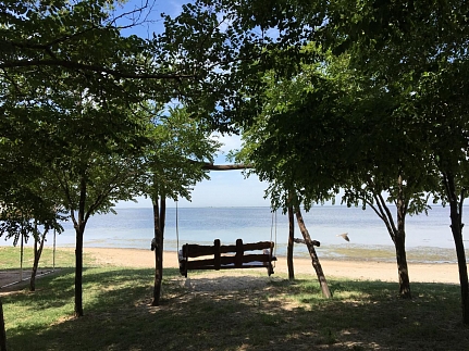 Пляж находится рядом с комплексом - открытое море с одной стороны и мелководный залив с другой.
