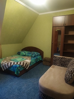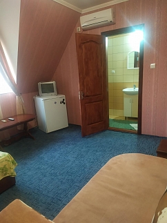 Для отдыха в частном секторе Бердянска гостевой дом предоставляет отдыхающим уютные 2-х, 3-х, 4-х местные номера. В номерах: современная мебель, холодильник, туалет-душ, кондиционер, спутниковое ТВ. Можно бесплатно пользоваться Wi-Fi.