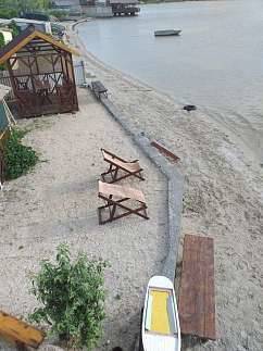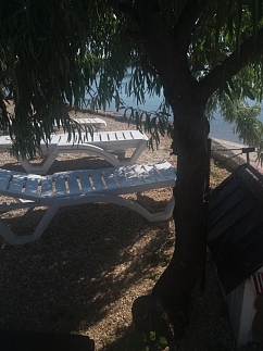 На лимане у нас есть свой пляж где стоят шезлонги и столики, а также мангал.