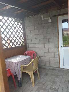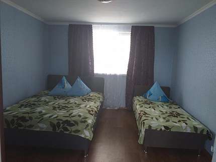 Находимся возле рынка на средней косе на стороне лимана на другой стороне открытое море до которого 3-5 минут пешком а также до рынка и различных магазинов.Возле нас находится санаторий Арктика
