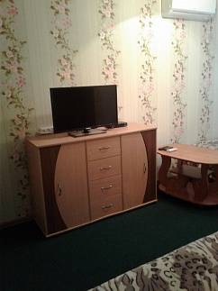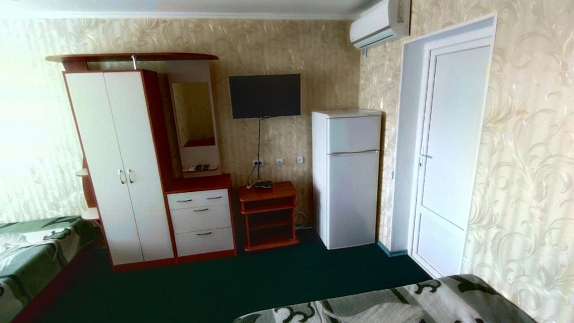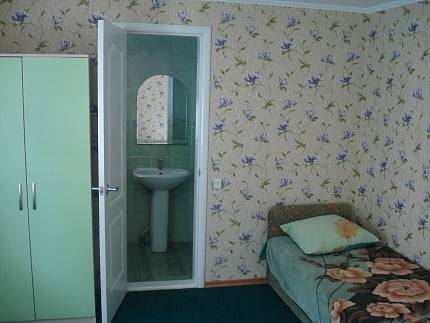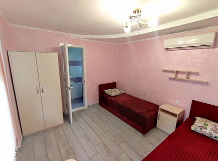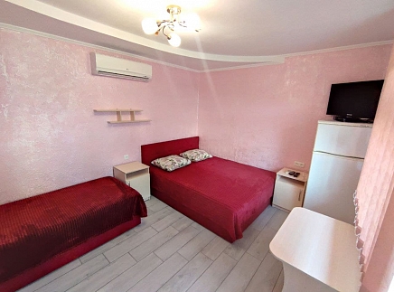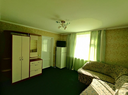 Во всех номерах в наличии: телевизор, холодильник, кондиционер. В номерах Люкс удобства в номере, в Экономах - во дворе.2 кухни со всем необходимым для самостоятельного приготовления пищи.2 летних беседки со столиками.Бесплатная стоянка для авто во дворе.Мангал, Wi-Fi Интернет.Рядом магазины, кафе, автобусная остановка (на Косу, дельфинарий, аквапарк, зоопарк).До моря 500 метров (5-7 минут ходьбы).Встретим с вокзалов города.Стоимость проживания указана за одного человека.С домашними животными не селим.