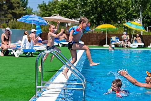 На территории базы отдыха: детская комната, детская площадка, Wi-Fi, экскурсии, парковка (12 парковочных мест), прачечная, оборудованный пляж, бассейн, теннисный корт, баскетбольная площадка, бильярд, минеральная вода, лечебно-оздоровительный центр, ресторан-бар, рыбная таверна.