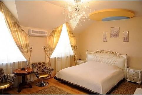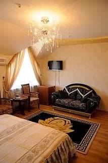 Уютные гостиничные номера класса «Люкс» оборудованы спутниковым TV, кондиционером, холодильником, мини-баром и ванной комнатой.