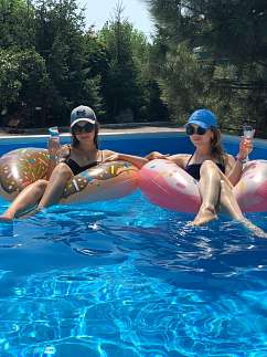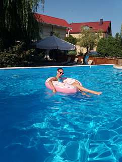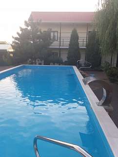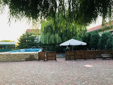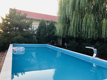 На территории шикарный открытый бассейн, когда волнующееся море , вы можете прекрасно провести время около него на лежаках под большим живым зонтом из Ивы и наслаждаться вкусными коктейлями. К морю пешком 5 минут.