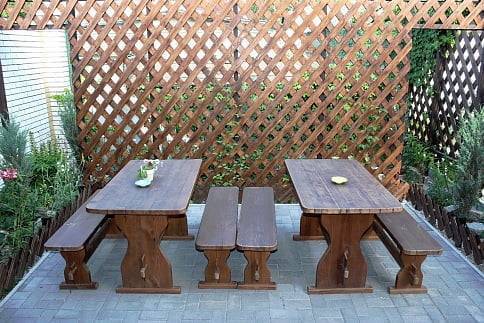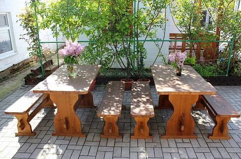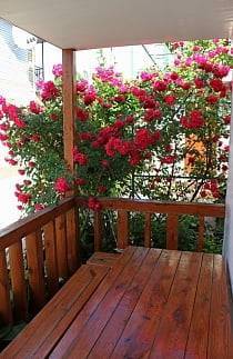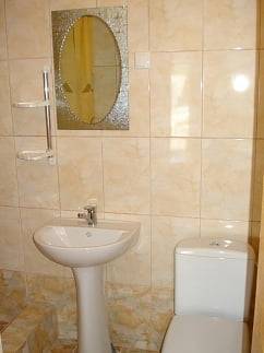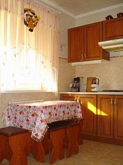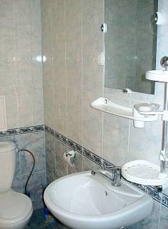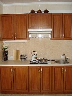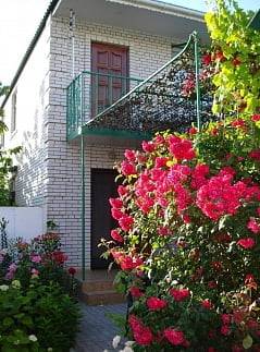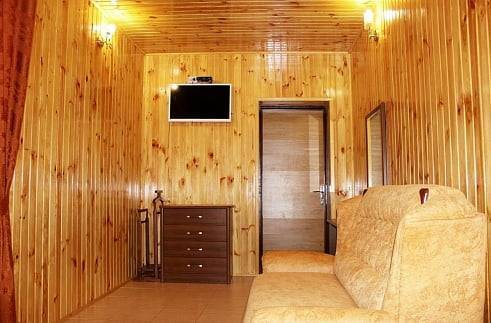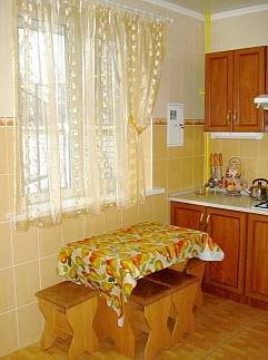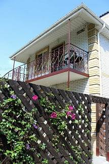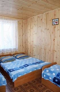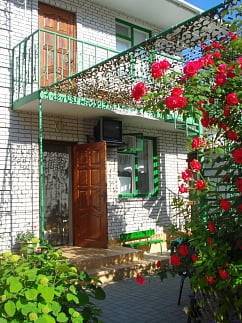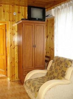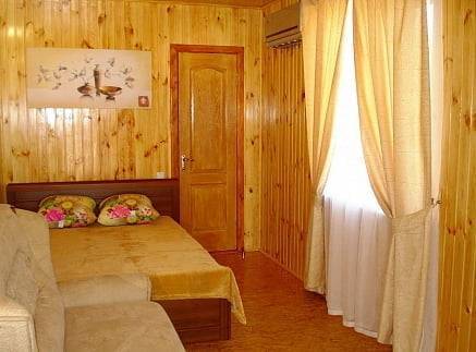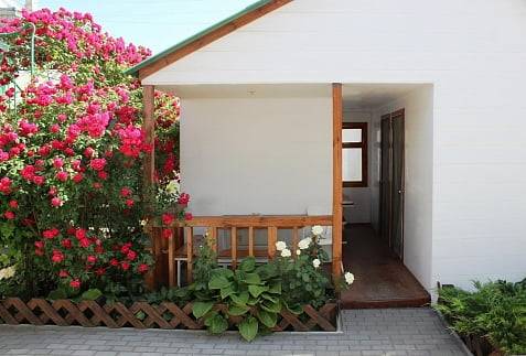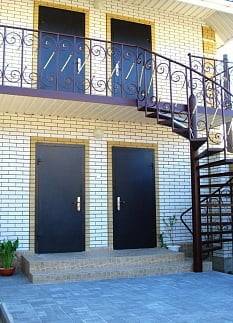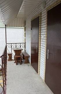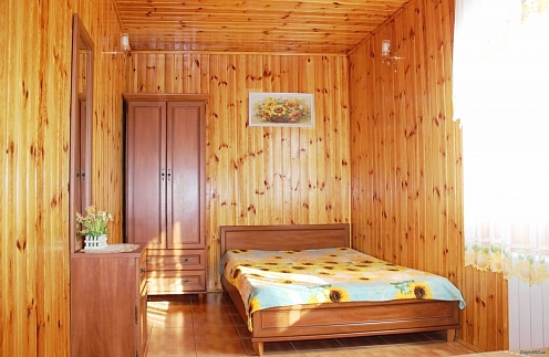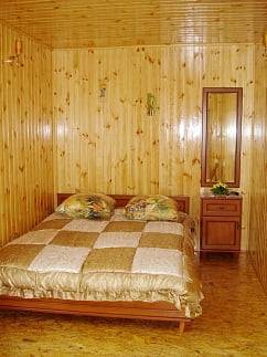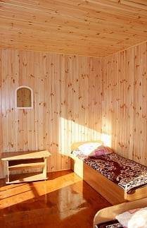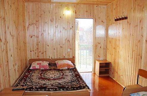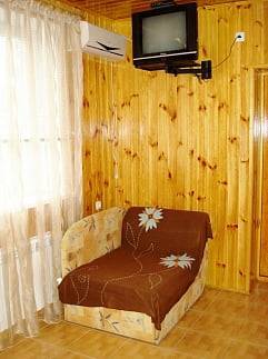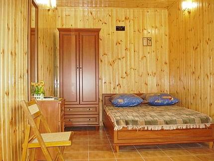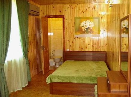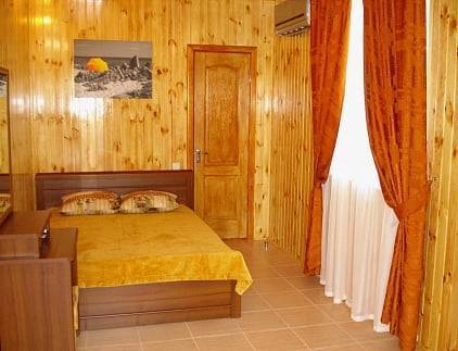 - 2-х-комнатные номера с санузлом, своей кухней и террасой/балконом (спутниковое ТВ, Wi-Fi, кондиционеры, автономное отопление, постельное бельё, посуда, кухня, холодильник, газовая плита, туалет, душ – всё в номере). Максимум для 6 гостей. Возможна аренда всего коттеджа под ключ максимум на 12 гостей (4 комнаты + 2 кухни + 2 санузла + терраса со толиками); этажи независимы, подъем на второй этаж по внешней лестнице.