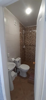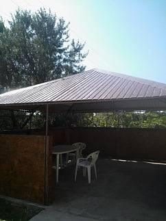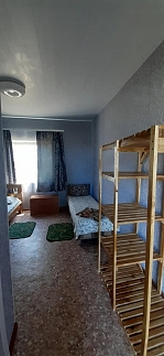 Во дворе предоставляется стоянка, мангал, кухня общая с посудой,душ и туалет.Комнаты рассчитаны на 2; 3; 4 ;6 человек.