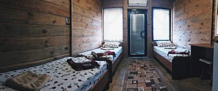Варианты номеров: однокомнатные двух- и трехместные, двухкомнатные номера.