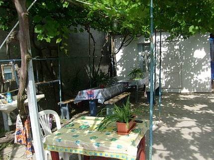 Вид на море, уютный большой двор,автостоянка, сауна,библиотека, при желании-питание. В минуте ходьбы магазин.