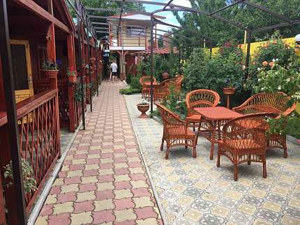 В номере: комод для одежды, телевизор, тумбочки. Удобства во дворе.