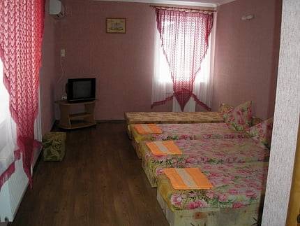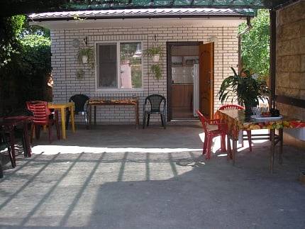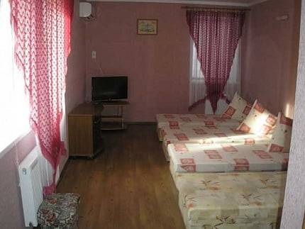 Номера люкс и полу-люкс в 50 метрах от моря в тихом районе.В люксе: ТВ, кондицонер, душ, с/у, мебель, холодильник,постельное бельё-бязь,комплект полотенец.В полу-люксе: ТВ, кондиционер, мебель,постельное бельё-бязь. Душ и с/у на этаже на 3 номера. Холодильник в коридоре на 2 номера.Во дворе 2 душа с горячей водой,две кухни для самостоятельного приготовления пищи,необходимая посуда,приготовление пищи в мультиварках не приветствуется.Все условия: кондиционер, горячая вода, ТВ, WI-FI,фен,утюг,стиральная машина,микроволновая печь, большая затенённая территория, детская площадка, мангалы, качели, лавочки, охраняемая парковка,видеонаблюдение.Рядом кафе, супермаркет,рынок, центр, магазины, автовокзал.Контактные телефоны: