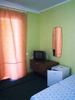 В номерах Эконом (2-3 местные): телевизор, холодильник, кондиционер, мебель. Удобства - на территории (душ и два туалета).