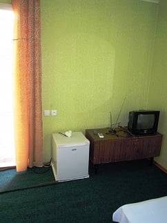 В номерах повышенной комфортности (2 местные): телевизор, холодильник, кондиционер, мебель, удобства внутри номера.