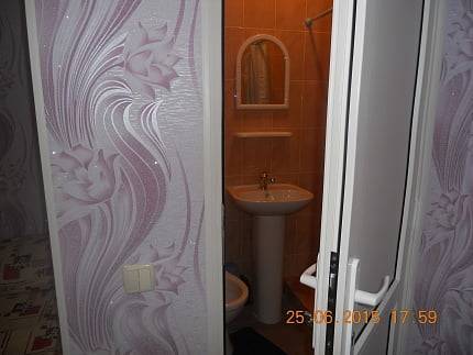 В номерах есть двухспальная кровать , холодильник , кондиционер , комод , тумбочка , сан узел и душевая . Между двумя номерами есть маленькая кухонька для приготовления еды . Возле каждого номера есть своя огороженная зона отдыха .. До моря 700 метров . 3Й пляж Остров счастья , возле дома останавливается маршрутка которая везет на открытое море 7 минут .