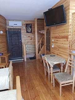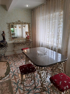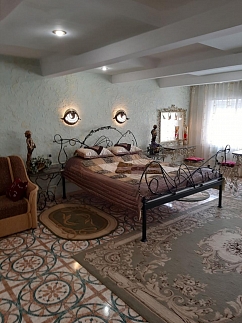 Имеется общая кухня со всей необходимой посудой. В номерах Супер Люкс кухня находиться в номере. Вода холодная и горячая подается круглые сутки. Каждый номер имеет свою изюминку. К Вашим услугам уютный дворик со столиками для отдыха и мангалом. Рядом кафе, магазин АТБ, столовая, аттракционы, остановки маршруток. У нас вы сможете отдохнуть всей семьей (компанией). Спокойная доброжелательная остановка поможет провести незабываемый отпуск на берегу Азовского моря