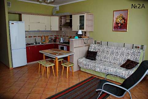 Номера оборудованы сплит-системами, имеются холодильники, спутниковое телевидение, электрочайники, фены, посуда, на окнах противомоскитные сетки, холодная и горячая вода круглосуточно. Предоставляем пляжные покрывала, полотенца и зонтики.