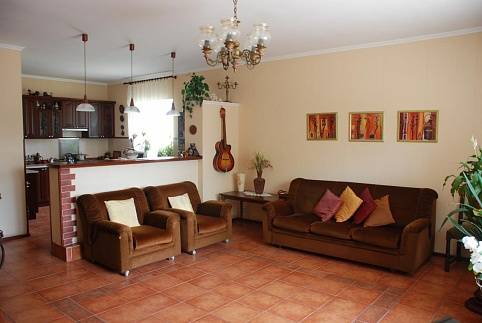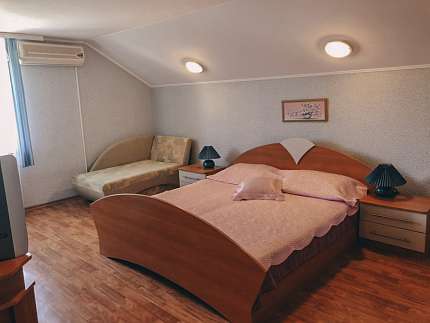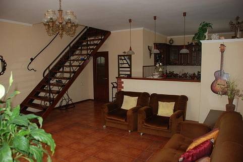 Рассчитано на 6 человек, а также мансардный 3-й этаж ещё на две спальни с отдельным входом ещё на 6 человек.