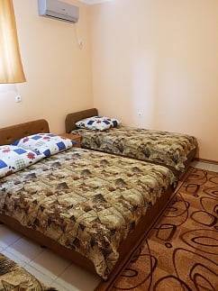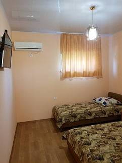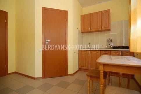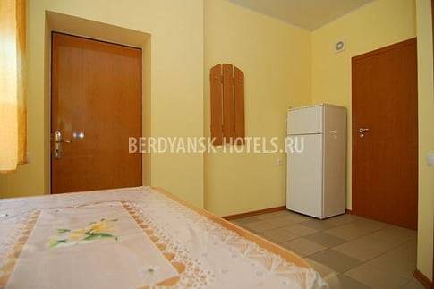В каждом номере имеются: кухня (8-10 кв.м),укомплектованная кухонным гарнитуром,двухкамерным холодильником,г азовой печкой,посудой; в комнате для отдыха (16-18 кв.м) грасположены удобные кровати, шкаф для одежды, телевизор и кондиционер; wi-fi, душевая кабина и туалет.Горячая и холодная вода круглосуточно.