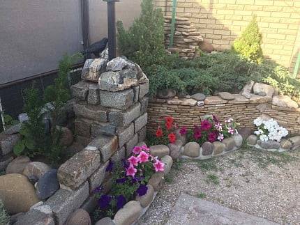 А еще у нас красивый дворик, цветочки, каменные клумбы и металлические невероятные затеи)