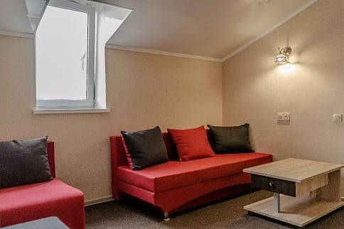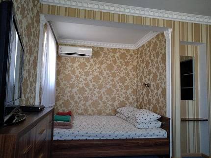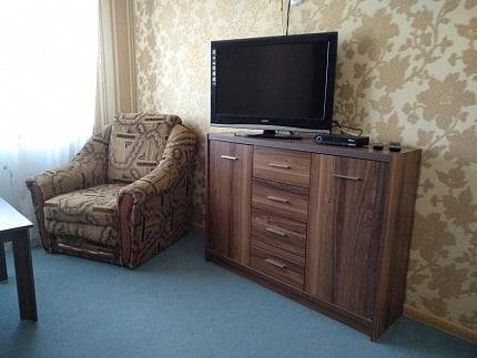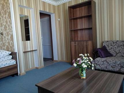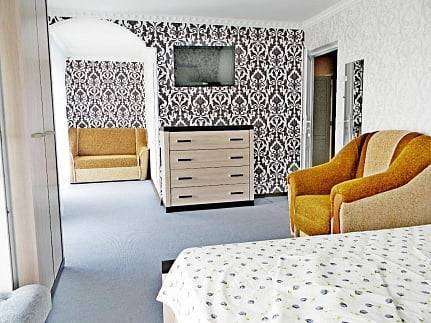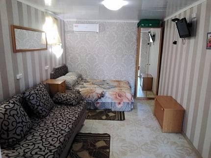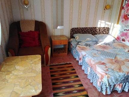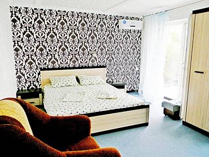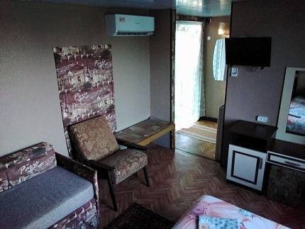 В номерах современная мебель, 2х спальная кровать, диван, постельное белье, полотенца, кресло, двухкамерный холодильник, электрочайник, кондиционер, телевизор,WI-FI,санузел, горячая вода круглосуточно.